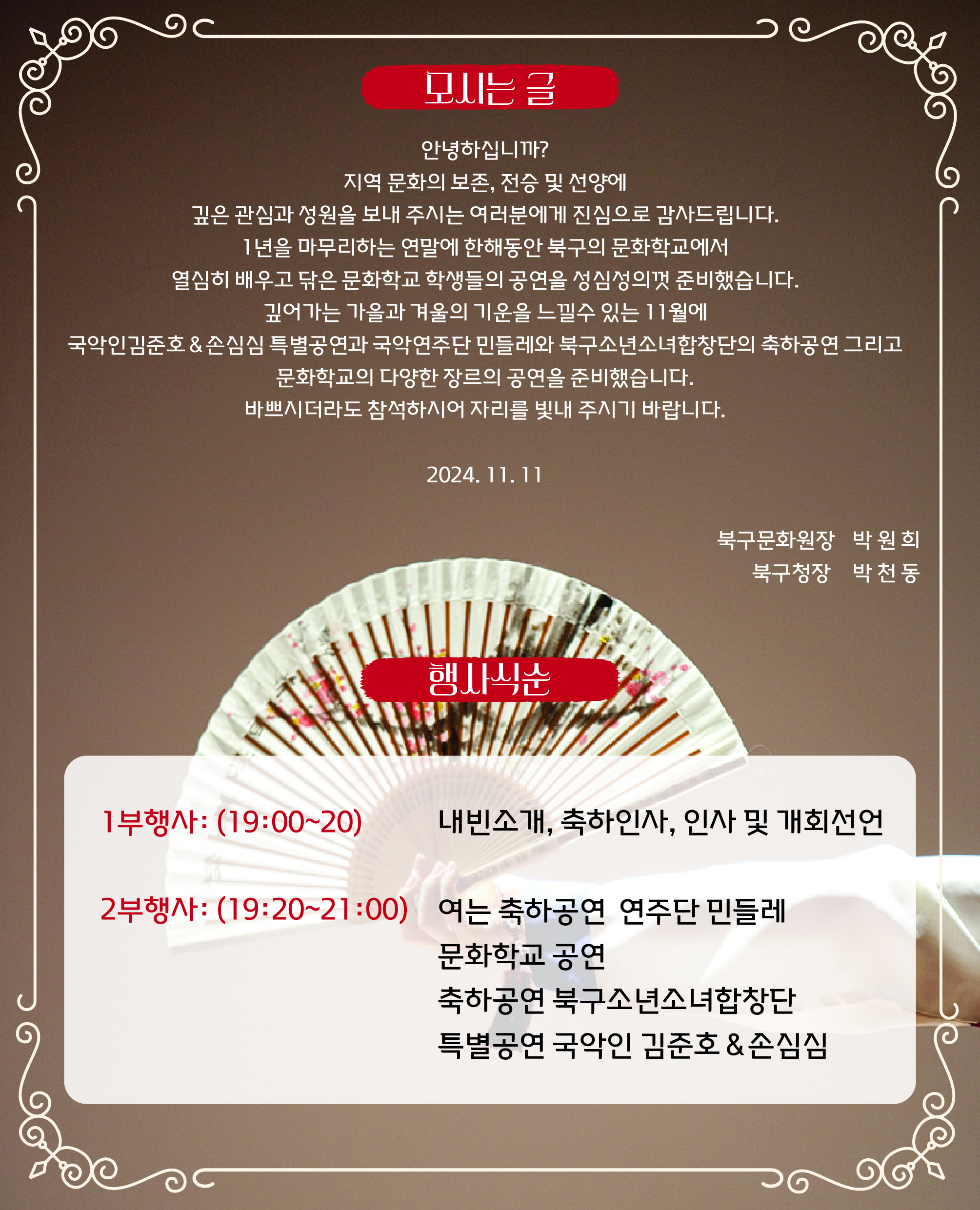 2024. 11 .11() 19:00 북구문화예술회관 2층 공연장